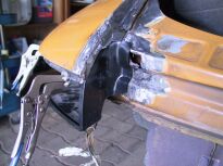 | dann das Heckblech neu verschweißt, die Ecke links unten erneuert
