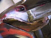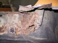 | Die vordere Ecke war vorn (Bild 2064), im Schwellerbereich (Stehblech,