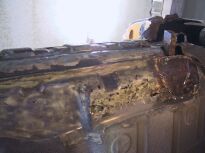 | Nach dem Heraustrennen der befallenen Stellen (2074) wurden Reparaturbleche